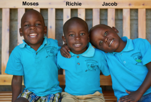 Toddler lunchtime at Naomi’s Village also ranks as one of my favorite daily happenings. I can always hear when it is about to begin. A distant familiar din of gleeful voices heralds the group’s return from a late morning walk around the community with toddler mom Mercy, who is as close to a pied piper as I could imagine. They have been out chasing insects and lizards, picking flowers for Aunt Doreen in the kitchen, greeting neighbors, and singing trail songs. No doubt they have made a few new friends along the way. Moses (4), their de facto mayor, usually leads the parade down the long driveway to our home and makes sure the rules get followed.
