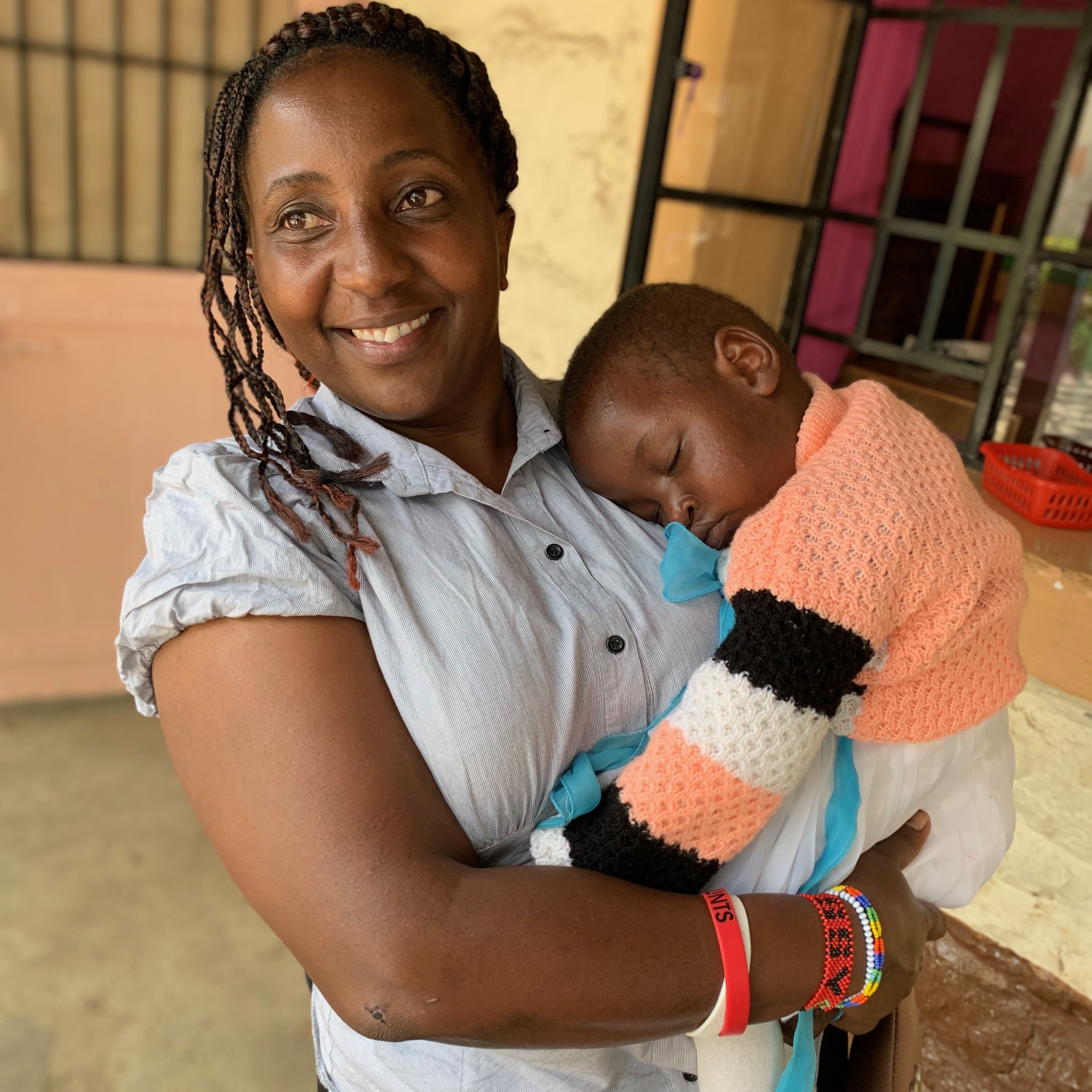 Everyone piled out and the fun began. Violet Najuma (meaning “flower” and “abounding in joy”), a pinch sweet, undersized 2-year old came first. A team of housemothers and our social worker Peris had already arrived, beating us to her. She got plenty of kisses and passing around, despite her sleepiness. We heard how she had been abandoned near Mount Suswa, and was battling tuberculosis. Having been on anti-TB meds for 2 months already, she was not contagious.