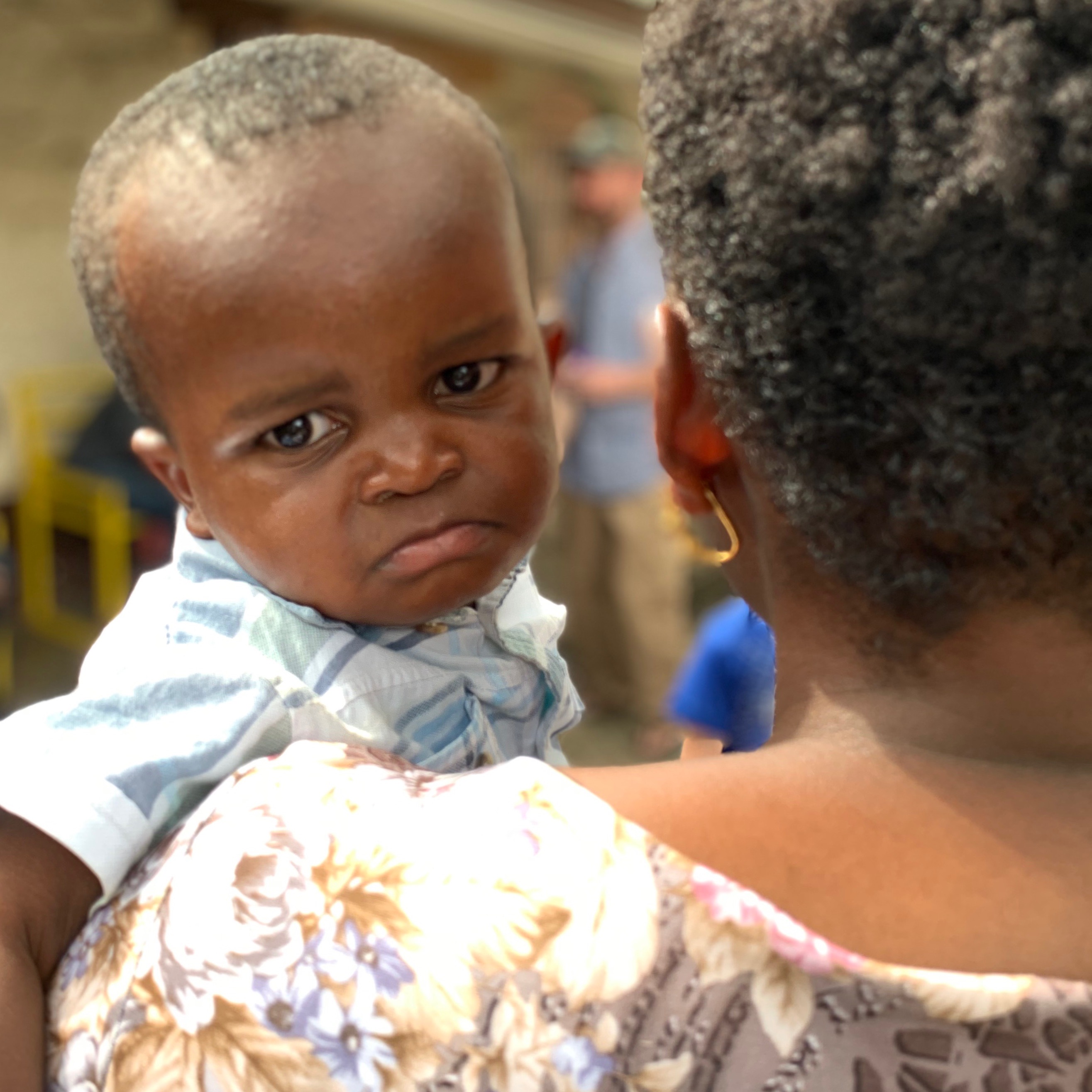 As we stood there marveling at this blessing, a caregiver walked by carrying a sad faced baby boy with a big chubby head. As a chorus of “awwww’s” filled the courtyard, we began to murmur the same questions simultaneously. “How old is he?” “What is his story?” “Do we have enough cribs in the baby room?”